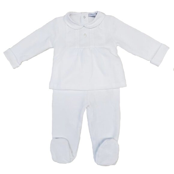 Babidu Canutillo Pintuck Shirt Footie Pant Set - White - NEW Matching Sets
