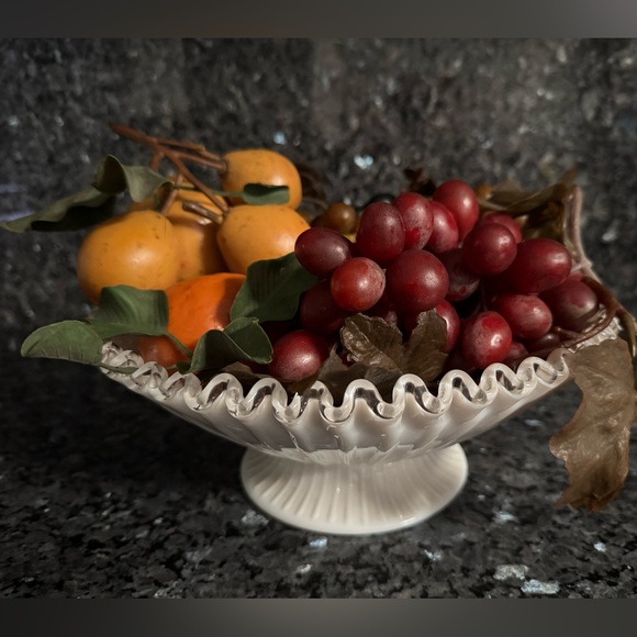 - Home > Art > Vintage Fenton Milk Glass Silver Crest Centerpiece Compote Footed Pedestal Bowl Glass Art
