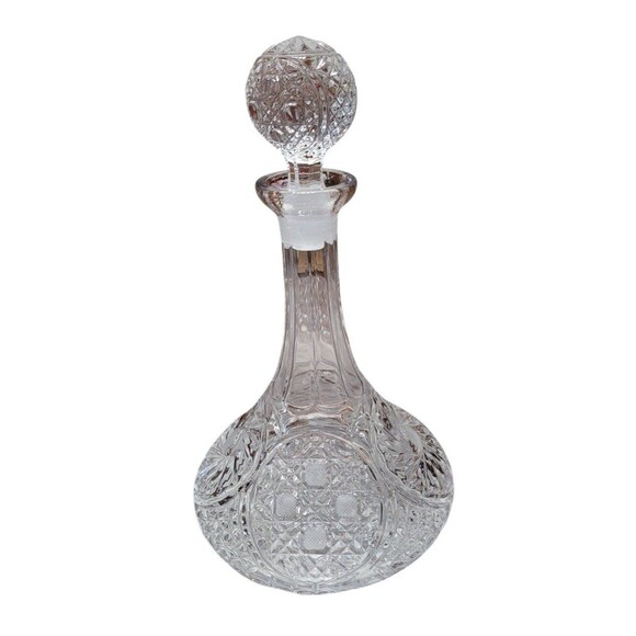 - Home > Accents > Ship Decanter Hand Etch Pressed Glass Bottle Pinwheel Decorated Stopper Rogaska Decor